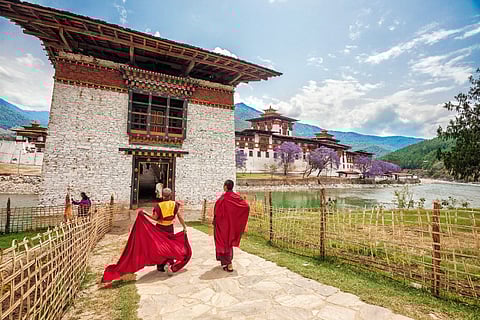 Up in the mountains of Bhutan, there comes a time, every so often, when heavy mist rolls in and blocks everything from view. That time is now. We pull over under an overhanging rock, and take off our helmets, gloves and boots. We are in no hurry to get anywhere.
