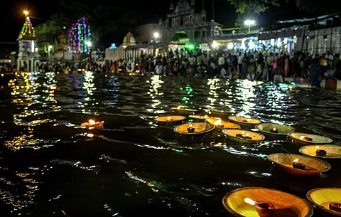 The Kaveri (earlier known as Ponni, the golden maid, because of the fine golden silt deposits) flows through Karnataka and Tamil Nadu. The river originates at Talakaveri in the Brahmagiri Range in the Western Ghats, of Karnataka&rsquos Kodagu district,1,341 m above sea level, and flows in a south-easterly direction for about 800 km before emptying into the Bay of Bengal. It reaches the sea in Poompuhar in Mayiladuthurai district. This is Tamil Nadu&rsquos largest river, dividing the state into north and south.