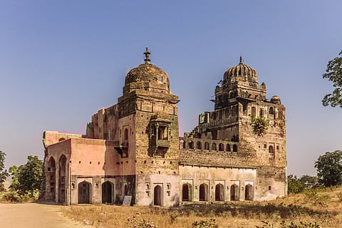 The Gond dynasty arose in the Gondwana region of central India around the 13th century CE. Their influence spread from eastern Madhya Pradesh to western Odisha and parts of Andhra Pradesh and Uttar Pradesh. They governed four major kingdoms: Garha-Mandla, Deogarh, Chanda, and Kherla. The Gond rulers held power between the 16th and 18th centuries in present-day Madhya Pradesh. Under the leadership of Sangram Shah, the dynasty experienced significant territorial expansion and cultural progress. During this time, Ramnagar served as a prominent centre. The monuments in Ramnagar, constructed primarily during the 16th and 17th centuries, reflect the prosperity and artistic achievements of the Gond rulers. The monuments built under King Hirde Shah in the late 17th century illustrate the glory of the Garha-Mandla kingdom. Located deep within forests along the Narmada River, these monuments served as the Gond rulers' seat of power. They blend Rajput and Mughal influences, showcasing the cultural assimilation of the Gond community. The structures, which include central courtyards, pointed archways, and stone lattice screens, exhibit Mughal architecture, while decorative stone parapets and multi-foil arches retain Rajput elements. Not only did these buildings function as administrative and residential complexes, but they also served as spiritual centres.