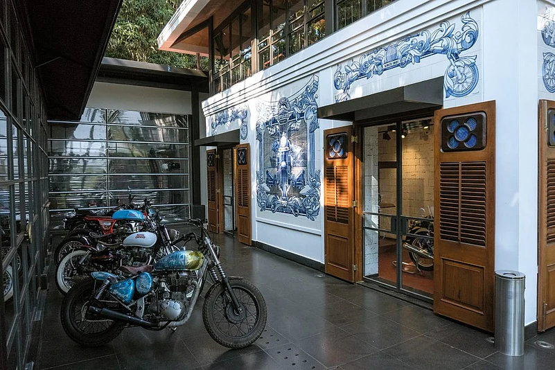 Back at the cafe, my hosts were preparing to fill me up on everything about what they call &lsquopure motorcycling&rsquo. The cafe, located right beside a lagoon, a mere 10 minutes away from Baga beach, was not only about the brand Royal Enfield or motorcycles, it was beyond that. The Garage Cafe in itself was a cultural hub&ndashfor riders, artists, food connoisseurs, those who customise bikes, and people like myself, who don&rsquot follow this particular culture but are open to learning. The cafe had three parts&ndashan exhibition area, motorcycle accessories and workshop area, and a bar.