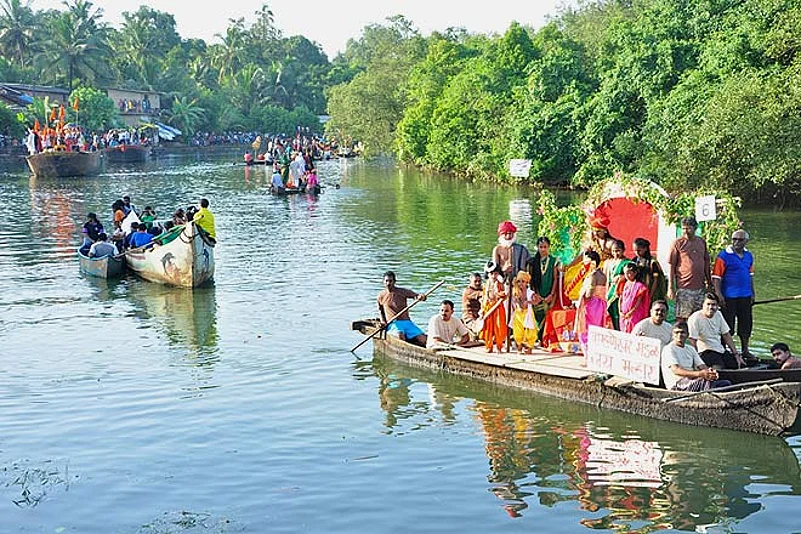 A festival celebrated very keenly by Goa&rsquos fishing community it marks the feasts of Saints Peter and Paul. The fishermen spend their morning partaking of their religious services and then the Sangodd celebrations begin. The celebration involves binding two or more boats together to form a makeshift platform to support miniature models of churches and chapels which are then carried along the course of the Cumbarjua canal. A bamboo pole with an image of St. Peter attached to it is also erected on the makeshift float. The boats make seven rounds of the canal, accompanied by raucous cheers and chants of &ldquoViva St.Pedro&rdquo and dances by colourfully attired fishermen. The celebrations culminate at the chapel of St. Peter which is located downstream and the day is rounded off with a cultural programme organised in the evening.