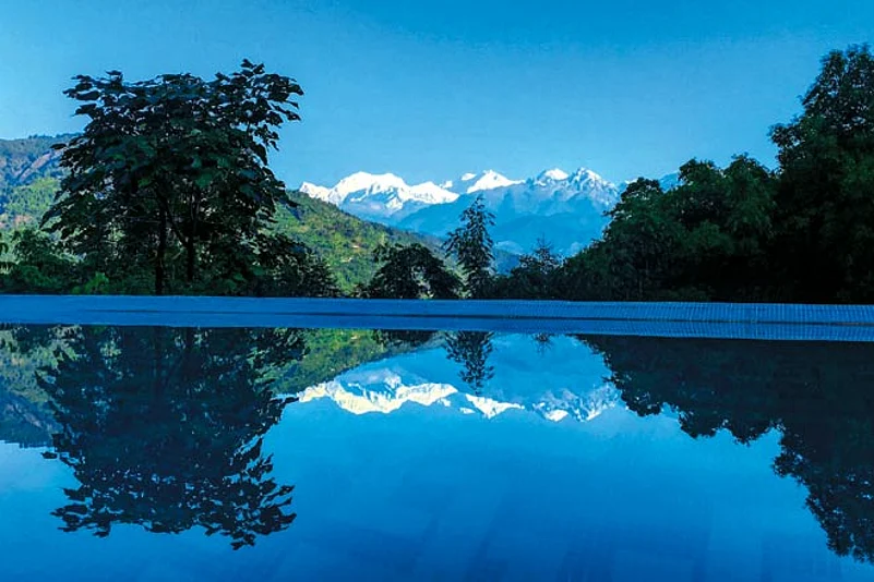 If getting to a charming destination is half the fun, the 44-acre Yangsum Heritage Farm promises heaps of it, with the drive to Rinchenpong in western Sikkim rated as one of the most scenic routes in the state. Built back in 1833, the mountain farm homestead was majorly refurbished more recently in 1966, but without losing its old-style sensi-bilities or respect for the vibrant local culture. Owned and managed by the hospitable and well-informed Tashi couple, Thendup and Pema, home-cooked food is definitely an important reason for surrendering to Yangsum. So expect deliciously prepared pork and chicken dishes served with freshly plucked vegetables and fruits from the fully organic farm&mdashthe Tashis grow avocadoes, cardamom, oranges, bananas, pears, apricots and mangoes, apart from seasonal veggies like peas and cauliflower, and they also cultivate paddy, maize, ginger, turmeric and sweet potatoes. The chhang is just as bracing. All around are groves of bamboo, and an open mixed forest of Himalayan alder, schima, magnolia, pine, rhododendron, cherry and chestnut, which guarantees wonderfully pure air every time you breathe. Remote but not isolated (the bazaar village of Rinchenpong is just a couple of kilometres away), the countryside is nothing short of idyllic, and is framed by a backdrop of the towering Khangchendzonga peaks arrayed against the Singalila Range. Don&rsquot be surprised if you envy the folks who call this paradise home. There are only five rustically wood-panelled rooms, each evocatively designed in the local tradition, mostly with muted wood juxtaposed alongside colourful, handwoven touches in linen and artefacts.