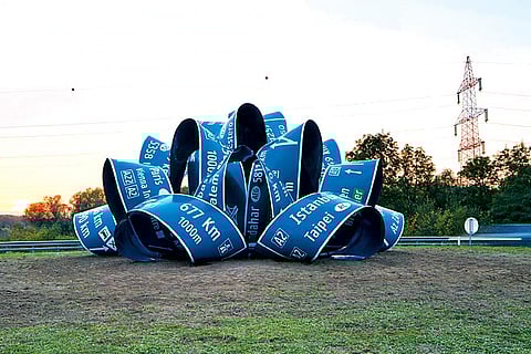 This is one of the few sculptures of such a scale to have been created by a contemporary Indian artist and placed on permanent public display internationally. The evocatively titled Here After Here After Here, by Jitish Kallat, unveiled in the second week of October at Stockerau, 20km north of Vienna, is part of a visionary project that places art at the heart of communities. A consortium of 10 municipalities, aptly named &lsquo10 vor Wien&rsquo (&lsquo10 near Vienna&rsquo), together with the Advisory Council of Public Art Lower Austria (how lovely that they should have such collaborations), initiated the installation of large public artworks in three roundabouts in the region. Their intention To promote the independent development of the region. Kallat&rsquos work is placed at a key intersection on an expressway, and the mammoth loop is rendered like an unending highway that symbolically connects Stockerau to places like Singapore, Marrakesh, Mumbai, Beijing, Bucharest, New York, Paris and Taipei, with actual distances and exit signs you would follow if you were to set off on a journey from here to one of them.