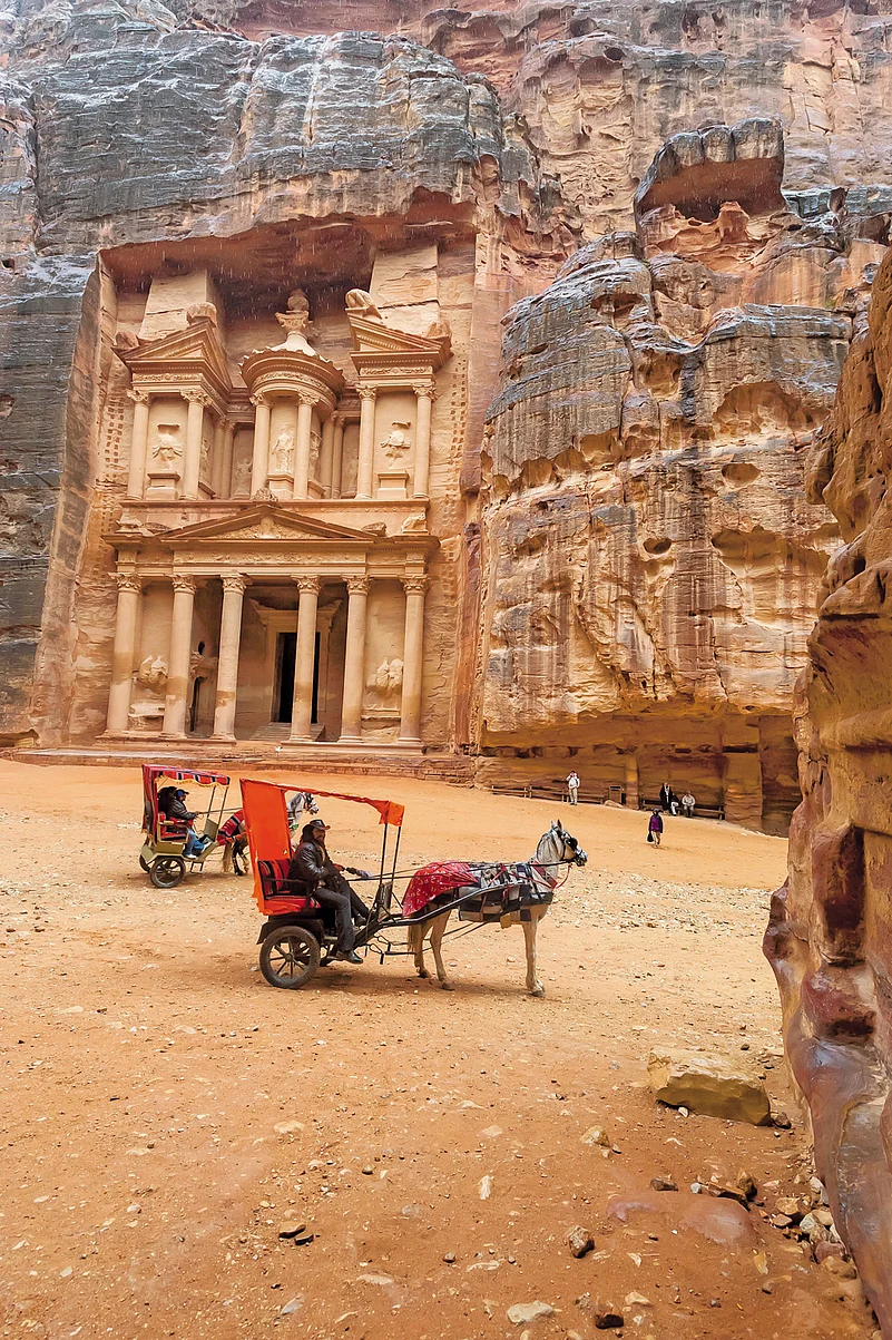 The most popular attraction to visit in Petra is Ad-Deir, a monastery designed in Nabatean architectural style. Reaching the monastery could be a chore for one has to climb a flight of 800 steps. The second popular attraction is Al Khazneh or the Treasury. To reach Al Khazneh one has to walk the 1.2km long narrow gorge of beautiful and naturally coloured sandstone walls. As you emerge from the Siq you will come face to face with the massive Al Khazneh, one of the best preserved monuments in Petra.
