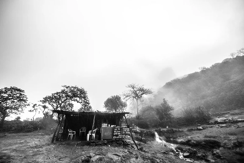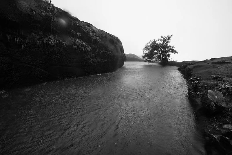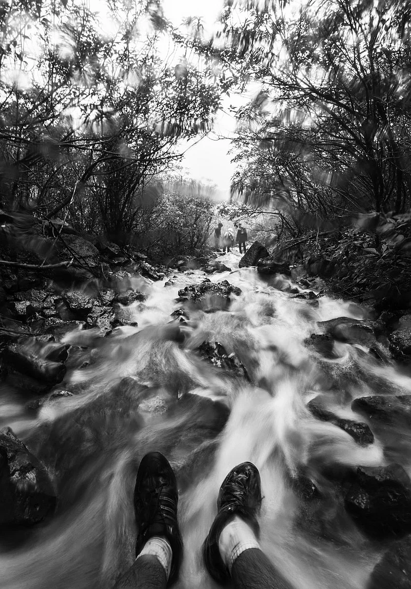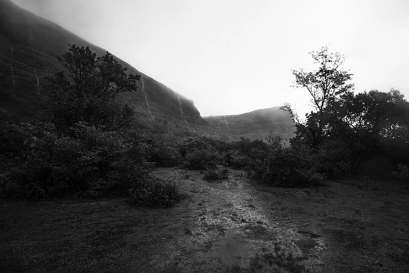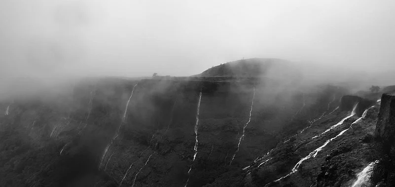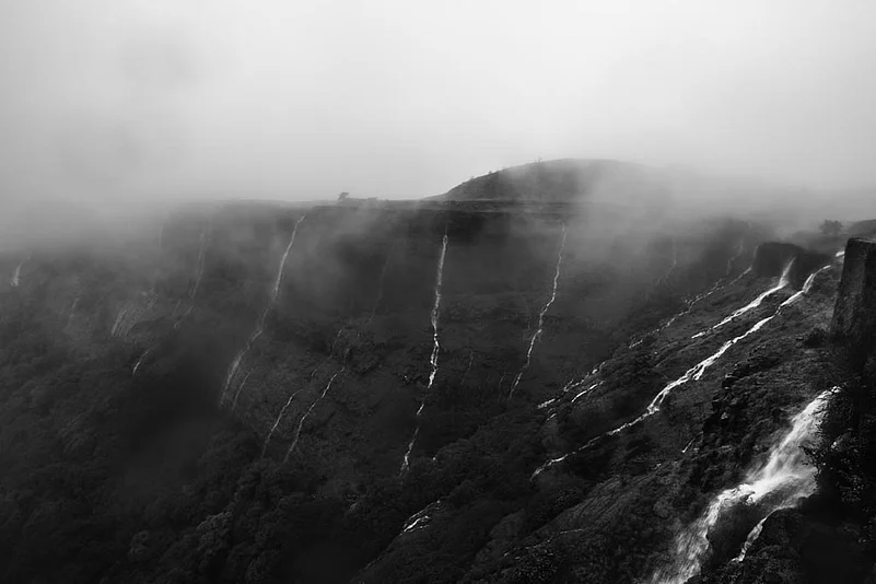 These photographs explore the environment of the place during monsoon the area remains covered in mist and it rains almost every day. At places, one can see patches of clouds moving around with rain pouring out of them, simultaneously. There is a stretch of the trek where one has to climb over a waterfall, and at the peak, it gets difficult to keep the eyes open for long, and the small waterfalls often flow partially upward, owing to the force of the wind Given all that, it&rsquos a beautiful place to visit during the Monsoon rains, which adds an ethereal quality to the historic grandeur of the place.