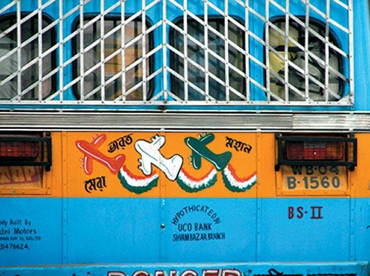 A common pattern is a bird flying off with a tri-coloured ribbon, but here, too, as in most panels, the attention to detail is noteworthy &mdash it&rsquos not any arbitrary winged figure, but specifically a dove, parrot, stork, duck, etc. A proficient artist in the trade is Bazlur Rehman or Baiju, whose passion for the tri-colour has resulted in a majority of innovative motifs. &ldquoThe Motor Vehicle Act stipulates the use of national colours and slogans on public transport, so I thought of interpreting my muse a little differently,&rdquo he says. About two hours and Rs 400 is what it takes to dress the bus for its road show.