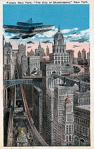 In this, my favourite section of the magazine, we return every month to images that transport us back into the past. If memory serves me right, this is the first time we&rsquore carrying images from the past that tell us what our future will hold. That future is already past &mdash but that&rsquos time travel for you. It&rsquos quite a delightful genre, and highlights include French and German picture postcards from the turn of the last century which imagine what life in the year 2000 would be like. The French play underwater croquet while the Germans walk on water or flit about like moths. Then there are the Americans, with this vertiginous vision of NYC. That&rsquos one dream that certainly seems to have come true.