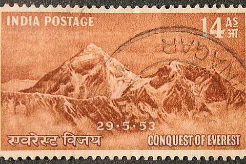 It is noteworthy that India released the first official Everest stamps in 1953. New Zealand acknowledged the feat of its citizen in an oblique way. It released two stamps on the theme of &lsquoHealth&rsquo in 1954. The stamps show a young mountaineer, map in hand, gazing at a snow-capped Mt Aspiring. Everest is shown in a balloon in the background, above Aspiring.