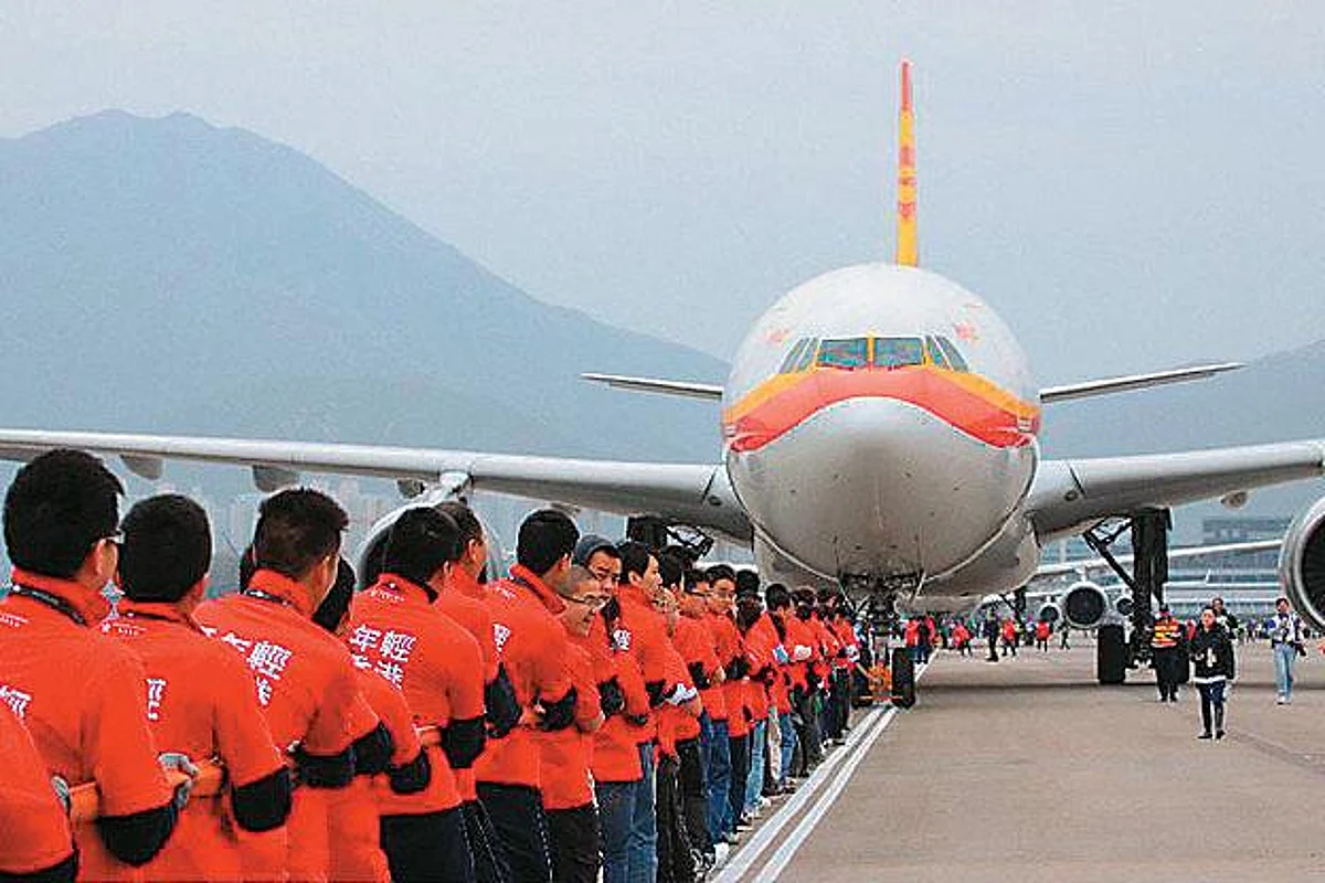 To mark 100 years of aviation in Hong Kong last month, 260 volunteers &mdash including children &mdash lined up for a tug of war against a Boeing 747, two Airbus 303s and a Zlin Z242L. The 100 people pulling the 218.56-tonne Boeing forward by 100 metres set a Guinness record for the heaviest craft pulled that distance by a team.