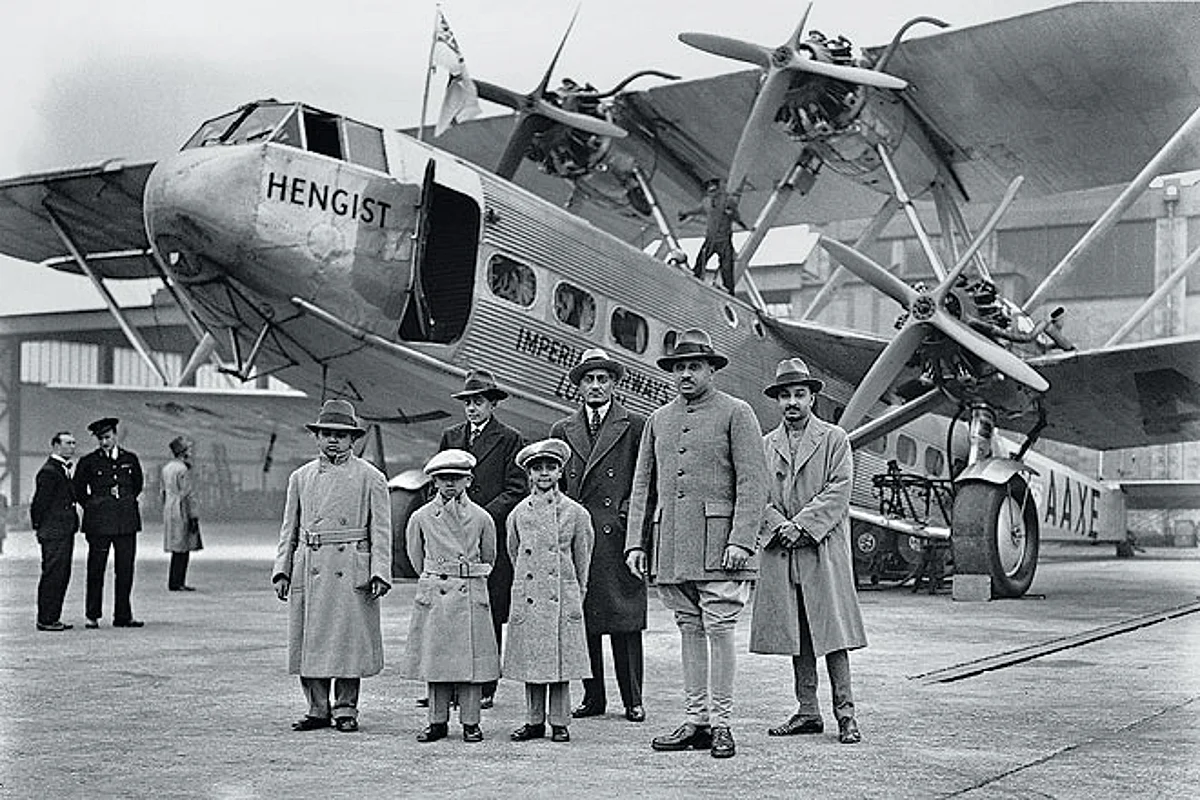 Time was when travel wasn&rsquot about the bells and whistles. That you were travelling at all, for leisure, was enough to earn you the stripes. Of course, you had to be a maharaja and then you didn&rsquot care about the stripes. Here, the maharaja of Jodhpur stands near his two sons, his brother Ajit Singh and other members of his entourage, before departing London on an Imperial Airways flight on a tour of Europe.
