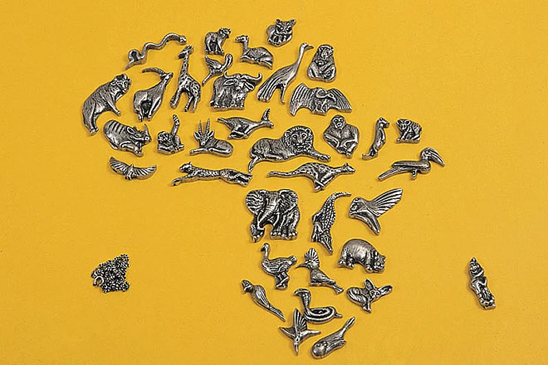 My uncle went to Africa, and all I got was this completely gorgeous Animal Puzzle. It&rsquos made by Makoulpa, the South African firm that specialises in wildlife related products in pewter, silver, gold and glass. Each piece is a beautifully crafted pewter animal all of them fit together to form the shape of the African continent&mdashincluding a little lemur representing Madagascar and they can be worn as pendants with the chain that comes with the whole. It comes in a velvet-lined wooden box with a booklet explaining each figure. Cost Fine jewellers don&rsquot put prices on their products...