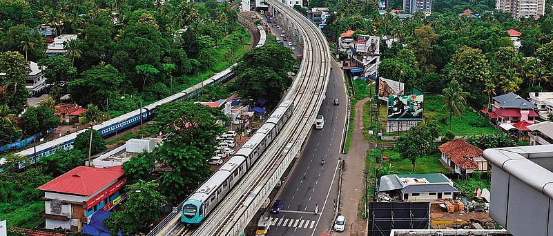 The all-new Kochi Metro connects the suburb of Palarivattom with Aluva