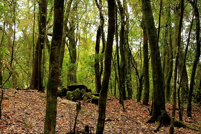 I stood at the edge of a forest in the village of Mawph­lang in the East Khasi Hills of Meghalaya, trying to get rid of negative thoughts before entering. This was no ordinary forest, you see, but home to a protective deity called U Ryn­gkew U Basa, revered by the Chief and Elders of the village to protect it from all harm. If anyone enters with bad inten­tions, they face dire conse­quences. A sacred grove or Law Kyntang, this forest has stood for at least 1,000 years and one of the reasons the forest still survives is because cuttting down any tree or branch here is taboo. Nature holds much significance in traditional Khasi culture and the spirit of conservation is deeply embed­ded in the people through a complex social matrix of religious beliefs. According to a Khasi saying, a village (hima) has no identity without its own sacred grove.