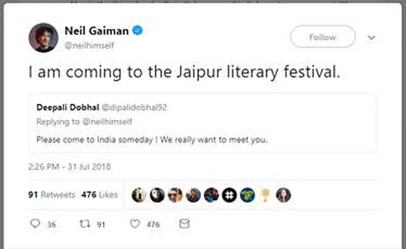 Neil Gaiman announces on Twitter he will be attending the ZEE Jaipur Literature Festival in 2019[/caption]