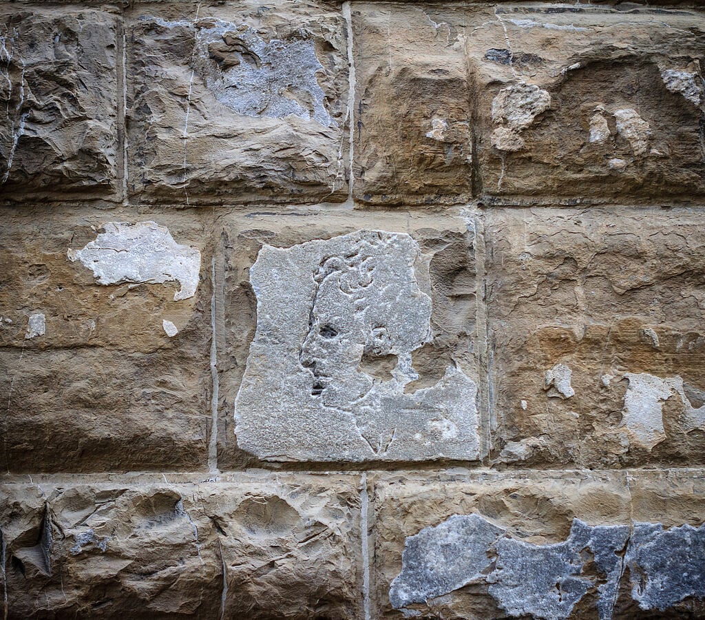 If Marinazzo is right, Michelangelo carved the face in the wall of Palazzo Vecchio when he came visiting for the installation of David, his iconic 17-foot marble sculpture, in the year 1504. One is bound to have real fun imagining a twenty-something Michelangelo surreptitiously carving the profile in the wall in the wee hours of the morning metres away from where the massive sculpture would be placed half a day hence, just like in an Umberto Eco book