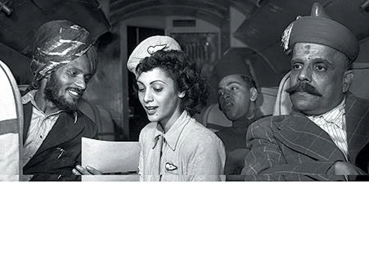 Only 21 air hostesses were on the rolls, Anglo-Indian girls all (&lsquofull-blooded native women&rsquo refused to serve).Hired at a monthly salary of $106.23 (uniforms free), they were trained by an American hostess from TWA. Most were based in Bombay and, if Life magazine is to be believed, jitterbugged for recreation between flights. Margaret Bourke-White, Life&rsquos intrepid staff photographer, captured this image on a Delhi-Bombay flight for the magazine&rsquos September 30, 1946 edition. Here, 21-year-old air hostess Monica Gilbert shares the flight report with a Sikh passenger, who doesn&rsquot seem particularly interested.