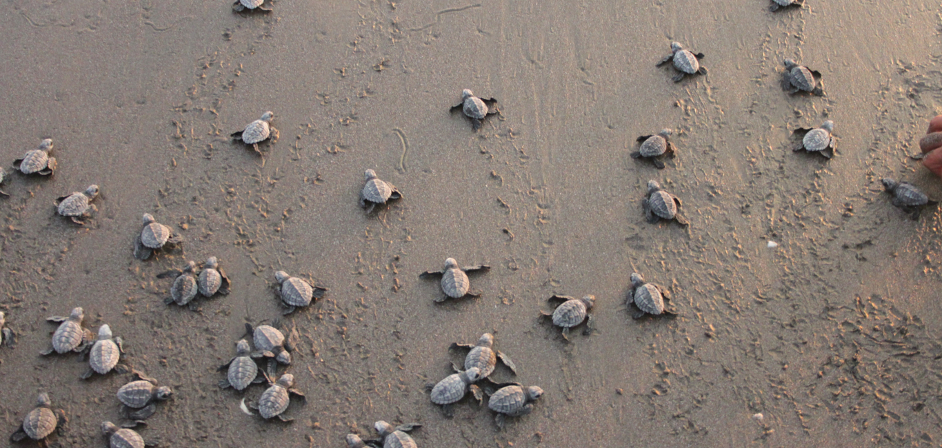 It is said the female turtles arrive from the South Pacific Ocean to lay their eggs here. They dig holes in the sand to lay the eggs, cover them, and leave. Usually, they arrive between November and March, and the laying of eggs takes place at night. The eggs hatch in 45 to 65 days.
