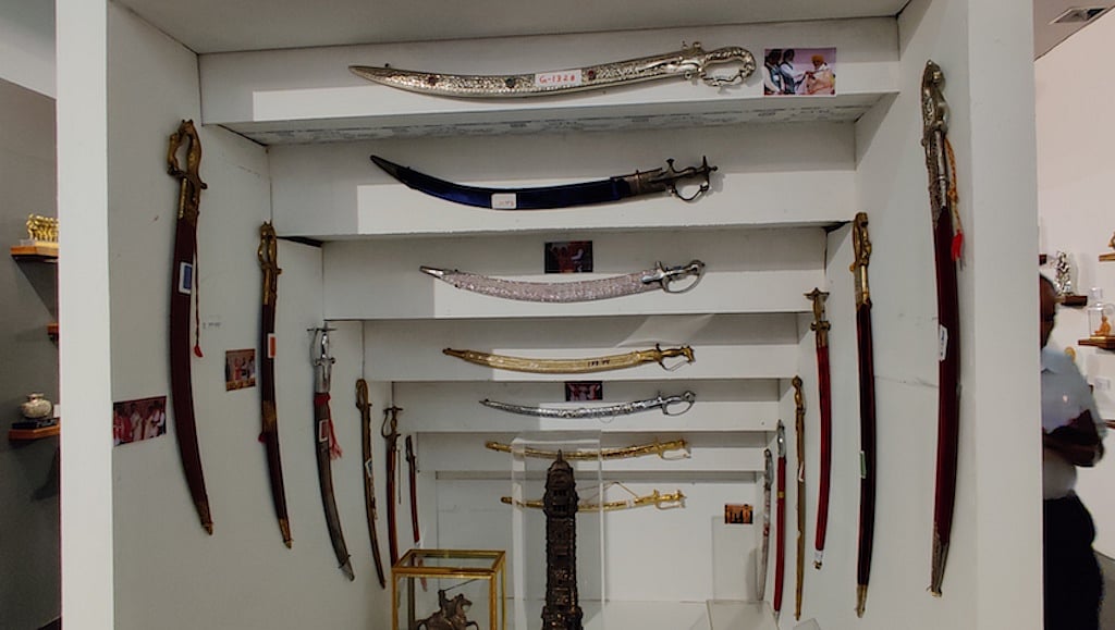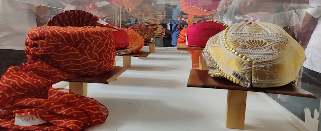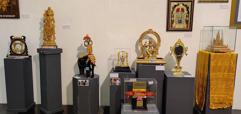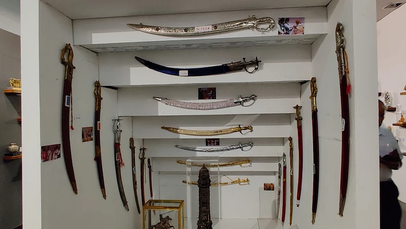 From the collection that includes 576 shawls, 964 anga vastrams, 88 pagris and various jackets along with silverware and various portraits, the highest-valued items are a pagri captioned &lsquoRajarshi Bhagyachandra Kokyet&rsquo presented by the Chief Minister of Manipur and a portrait of the Prime Minister embroidered on silk, gifted by the owner of Seematti textiles, Beena Kannan. Both items are valued at @INR2.5 lakh each.