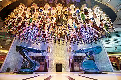 I did a round of the ship&rsquos eateries &mdash 18 restaurants and seven bars &mdash and got a taste of what the fuss was all about. The first stop on the jaunt was Chic, which lives up to its name. There was The Grande, of course, followed by Silk, a Chinese restaurant that offers a more social atmosphere. After this came the casual American Icon Grill, the Vintages Wine Bar (it lingers in my thoughts mainly because of the 500-plus wines it serves), Wonderland (quite special &mdash imaginative food, lovely décor, and special textures and flavours), Izumi (typical Japanese, superb sushi), the Chops Grille (Royal Caribbean&rsquos signature steakhouse) and the Bionic Bar (made-by-robots cocktails, aptly by a method called makershaker). Splendid