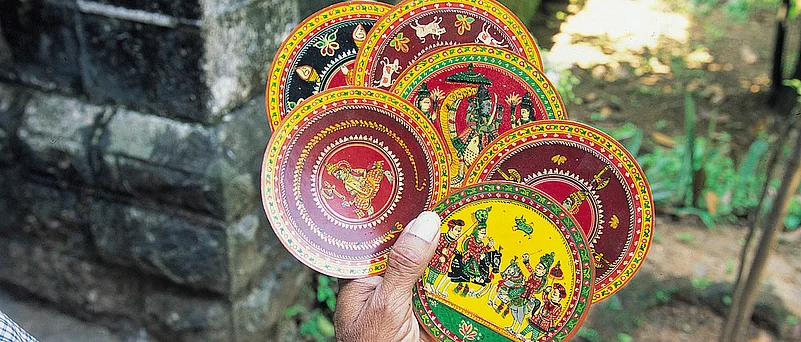 Each suit has 2 court cards, Raja (King) and Mantri (Minister) and 10 other cards that adopt various attributes (avatars). Three types of cards are known Chitrakatha, which is similar to the Paithan style and allows the mobility to the figures the Devastaan (temple) style, which is rather static and the widely acclaimed Ganjifa style, one of whose variations includes an iconographic depiction of the 10 incarnations of Vishnu in a typical stylised manner. Though kings used to play with cards made of ivory or tortoise shells laid with precious stones, the cards today are painted on cartridge paper cut into circles highly skilled work demanding enormous patience. A bunch of cards takes nearly 3 months to make
