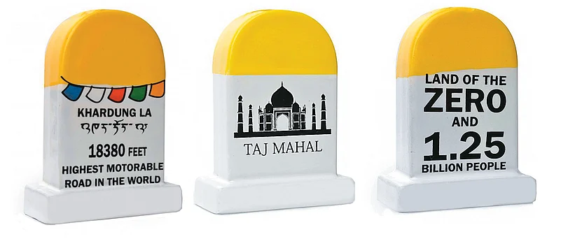 You visited India and had a great time. You took a selfie in front of the Taj Mahal, you enjoyed walking around Cubbon Park in Bengaluru and you even took a trip to ethereal Ladakh. And now, you are standing at Delhis IGI Terminal 3, headed home with a bagful of memories. But what if you could freeze these memories forever Thats what these Happily Unmarried milestone paperweights can do for you. Imagine these small milestones lying on your desk, bringing back happy memories of your holiday in India. The brand has an outlet at the airport and retails these ceramic 3.75x1.25 milestone-shaped paperweights with funny and interesting quotes and visuals of different cities. The Agra milestone memorabilia has a picture of the Taj Mahal on the back. For Ladakh, theres the altitude of Khardung La, Indias highest motorable road, mentioned behind. And many more options to choose from (275). You can also visit happilyunmarried.com.