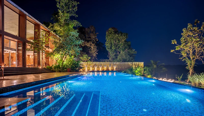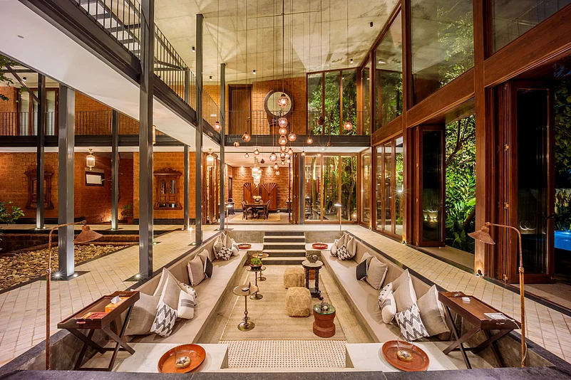 Conceptualised by ace fashion designer Tarun Tahiliani and brought to life by celebrated architect Sameep Padora, the villa was done by Asahi Glass to showcase their architectural glass. The Glass Villa with its unique architecture has a wood and glass facade, laterite walls and sloping exposed concrete ceiling. The four bedrooms have two faces with floor to ceiling glass looking into green spaces. The sunken seating next to the courtyard, and the massive pool side space have stunning views over the fields and back waters. TRR&rsquos home decor items have now taken its overall beauty a notch higher.