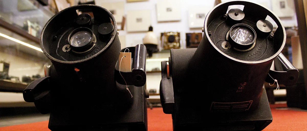 These two K-20 cameras are part of a set of 13 proudly stationed at the Camera Museo in Gurgaon. A hand-held, metal-bodied, aerial camera, the K-20 has a morbid past. It was used during World War II to take before-and-after pictures of bombings, says Aditya Arya, whose private collection of vintage camera equipment started the museum, now supported by the India Photo Archive Foundation.