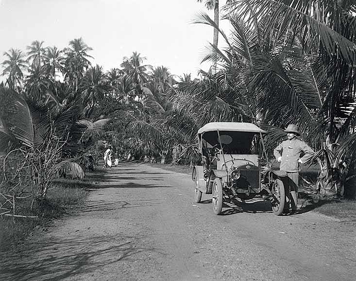 In 1982, when Michel Fortini had just enrolled in a prestigious photography school in Arles, his grandfather Luc Franceschi took him to Centuri, a seaside village in Corsica, where he gifted him an attic-full of neatly stacked glass negatives. These were visual dispatches of the travels and everyday life of their ancestor Mathieu Micheli, who lived in the erstwhile French colony of Pondicherry in 1910. The pictures are enthusiastic documents of a quotidian reality, not so different from what a contemporary Micheli would post on a social networking site. All the portraits of him show Micheli consistently smartly hatted-and-suited, regally borne aloft a hand-pulled rickshaw by a sinewy native, or standing smartly beside his motorcar on the street. There are also numerous pictures of life in the colony of processions streaming down the street, of the locals gathered before their huts, of dockworkers stacking cargo by the sea.