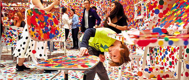 Have you heard of Japanese avant-garde artist Yayoi Kusama At the age of 10, she began to experience hallucinations, seeing light, auras and polka dots. The dots, especially, became her obsession and, eventually, a theme common to many of her creations. In Yayois hallucinations, the world around her got covered with dots and she felt like she had begun to self-obliteratea word she uses to describe the feeling of losing oneself and becoming one with the universe. The Obliteration Room, an interactive project Yayoi first displayed at Australias Queensland Art Gallery in 2002, tried to convey this feeling. It invited adults and children alike to stick polka dot-shaped stickers on the interiors of a stark white house that functioned as a canvas. With every sticker, people obliterated the house and saw the world through Yayois eyes. The Queensland Art Gallery is currently hosting a new edition of The Obliteration Room up till February 4 next year. So if youre down under, stop by and contribute to this peculiar universe. Entry free. See qagoma.qld.gov.au.