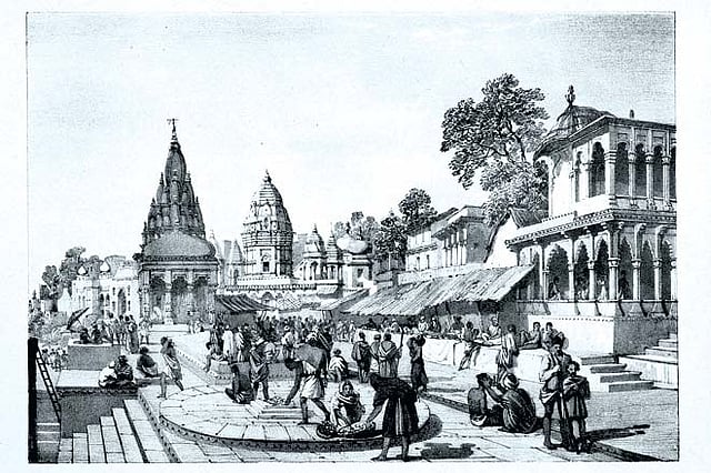 Returning to Calcutta in 1832, he soon became a leading India expert, primarily as a brilliant numismatist. He established a uniform coinage for India and reforming the Indian system of weights and measures. He then went and deciphered the ancient kharoshti script by studying coins of Indo-Greek rulers, and established the system of reading India&rsquos history through the study of coins that is now prevalent. As the editor of the journal of the Asiatic Society, his crowning moment was the deciphering of the brahmi script of the Ashokan rock edicts, and associating them with the historical figure of Ashoka. His idea of a compilation of Indian historical inscriptions resulted one of the greatest corpus of inscriptions in the world, which essentially began the study of Indian history. He literally worked himself to death, falling ill in 1838, before passing away in London in 1840. A phenomenally talented man, he was a great draughtsman as well, and during his decade in Benaras, he drew some fascinating lithographs of the city ghats, including this one of the Dasaswamedh Ghat. His illustrations were collected and published as Benaras Illustrated in 1830. An elegant memorial to this remarkable man stands by the Hooghly in Kolkata.