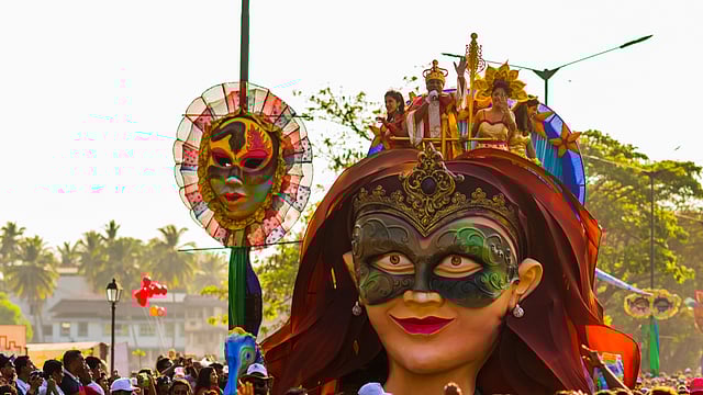 For the three days leading up to Lent, a 40-day period of prayer and fasting observed by Catholics, the entire state of Goa is engulfed in the whirlwind of Carnival. This vibrant festival features an abundance of music, delicious food and drinks, art and craft exhibitions, and lively masquerade balls. During these festivities, masked revellers take to the streets, indulging in eating, drinking, dancing, and numerous other fun activities.