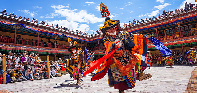 Hemis Festival of Ladakh (now a Union Territory) is being observed with due religious fervour but sans the crowd it usually attracts from around the globe. While most monasteries in the region hold their festivals in winter, the Hemis Festival is usually held in June/July. The monastery&rsquos nearness to Leh (about 45km away by road), the pleasant weather, and the extravagant play of colours (the monastery, the attire of the dancers, the blue sky) makes it one of the most photographed festivals of India.