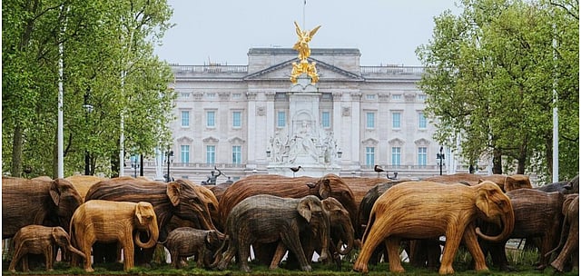 About 100 life-sized Asian elephant sculptures went on display outside the palace marking the launch of the biggest environmental campaign of the year.