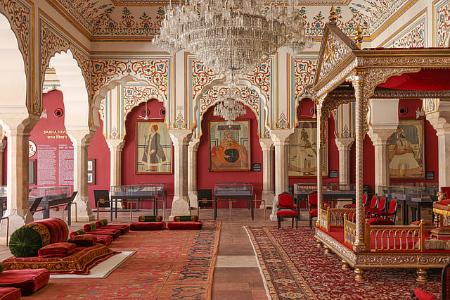 Long closed to the public, the Sabha Niwas has now been reimagined as a permanent gallery space, offering visitors a richly immersive glimpse into the political and ceremonial life of the royal court of Jaipur.
