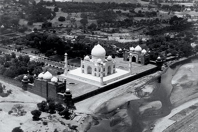 &ldquoThe Taj truly is&hellipa poem&hellipIt is not only a pure architectural type, but also a creation, which satisfies the imagination, because its characteristic is Beauty. Did you ever build a Castle in the Air Here is one brought down to earth, and fixed for the wonder of ages yet so light it seems, so airy, and when seen from a distance, so like a fabric of mist and sunbeams, with its great dome soaring up, a silvery bubble, about to burst in the sun&hellip&rdquo wrote Bayard Taylor, a journalist, after his visit to the Taj Mahal in 1850. Those were pre-flight days. And even though it was man who took to the air first, the Taj retained its lyrical lightness, and remained the most conspicuous structure in the whole of North India for aviators. Aerial views of the Taj were one of the major attractions of the Imperial Airways&rsquo Empire Air Routes (England-India-Malaya-Australia) which were established in 1936. The flight path from Delhi to Cawnpore took airplanes over Agra in the United Provinces, and gave travellers mesmerizing views of the &ldquobeautiful marble tomb erected by Shah Jehan in 1632.&rdquo
