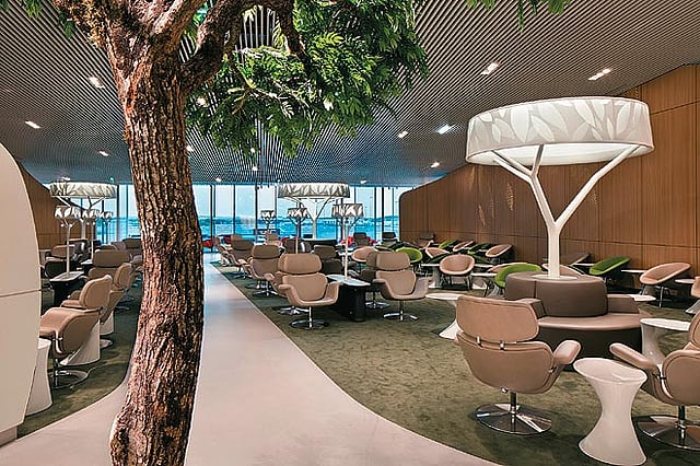 It helps that there are Ladurée macarons and window-shopping at Chanel, Dior, Hermès and Miu Miu to look forward to. But first I must make a stop at the new (about a year old) Air France lounge in 2E &mdash a sprawling vision in white, only occasionally broken up by a life-like tree or by curved separators divvying up a space that could well have been the set for the new Star Trek Into Darkness. I grab some breakfast (the spread is almost as expansive as the lounge) and a bar stool to check my mail on one of the iPads placed at one end of the hall. But with time running out, soon I&rsquom back outside to take a turn about the terminal.