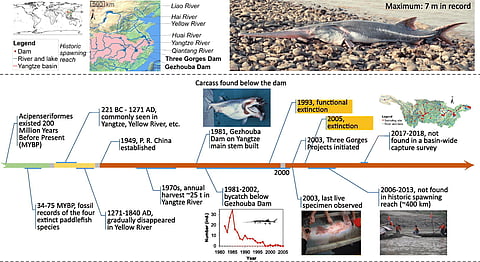 Imagine surviving the mass extinction that killed the dinosaurs, only to lose your life to humans. Owing to human activities, the Chinese paddlefish, one of the world&rsquos largest fish that have been around for 200 million years, have not been spotted since 2003. The species could reach up to 23 feet in length and have a special sword-like snout which helps them catch their prey by sensing electrical activity.