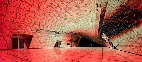 An entertainment development in Incheon, a city outside Seoul, has managed to capture some of this complex idea. &lsquoThe Imprint&rsquo, a building designed by Danish firm MVRDV, has used fluid architecture and an alternative perspective to imprint the design of nearby buildings on its walls. Dominated by a golden, layered entrance, its two white buildings house a nightclub and an indoor theme park. Both these areas can be windowless, which gave MVRDV room for some theatrics.