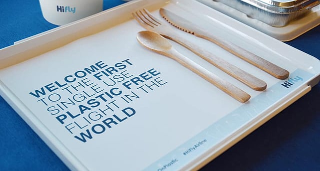 Hi Fly, a Portuguese charter airline that specialises in wet leases (providing aircrafts to other airlines) has become the first airline to say &lsquono&rsquo to single-use plastic. On December 26, Hi Fly took its first flight from Lisbon, Portugal to Natal, Brazil and became, in their words, the &lsquofirst-ever jet-age passenger flight with not a single-use plastic item on board.&rsquo
