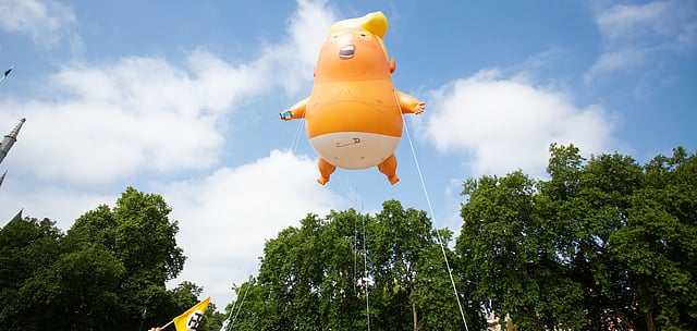 It first featured in July 2018 at a protest against Trump&rsquos visit to the UK. Londoners saw an opportunity to show their contempt by flying an over-sized balloon of Trump above the Parliament Square.