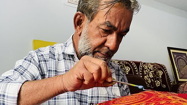 "This art requires extreme concentration, dedication, and patience," Gafur said while describing the challenges of being a rogan artist. The 57-year-old says that he and nine other family members have been practising the art for eight generations. "Many families in Gujarat practised rogan art in the past. In Nirona itself, four families were in this profession. But its orthodox requirements and low income made it difficult to pursue it as a full-time profession."