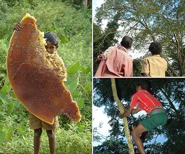 Numbering about 72,000 today, the Kattunayakan are spread over the Nilgiri Biosphere Reserve—the trijunction of the Mudumalai Tiger Reserve, the Bandipur and Nagerhole tiger reserves of Karnataka, and the Wayanad Wildlife Sanctuary in Kerala. They eke out a living by collecting and selling honey, wax and other minor forest products (MFPs), and are known for their physical strength, scaling steep cliffs and tall trees to collect honey.