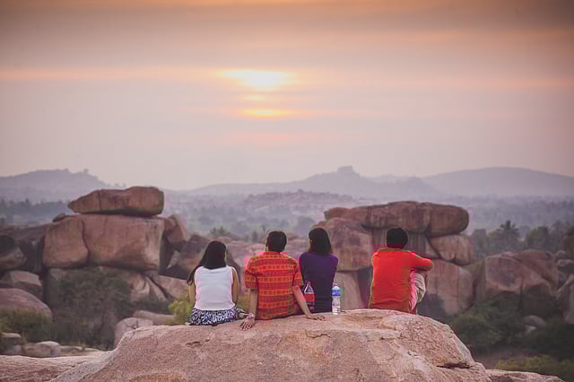 Sunset Point on Hippie Island is one of the best places to visit in Hampi. This destination offers breathtaking views of the setting sun. If you are lucky, you can catch a group of musicians jamming along, making it the ideal background score to accompany the spectacular vista. This spot is also known for its beautiful sunrises and lush green rice fields.