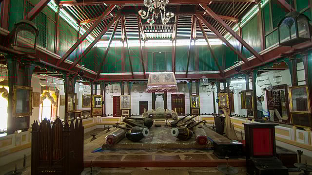 The palace itself is imposing, and the intricate carvings on the walls and the jaali work on the jharokhas (windows) are exquisite. There are the unmistakable symbols of erstwhile royal pursuits—yellowing photographs of young men in sports attire, and walls of trophies, comprising lions, deer, bears and even a hippo. However, everything has fallen into a state of disrepair.