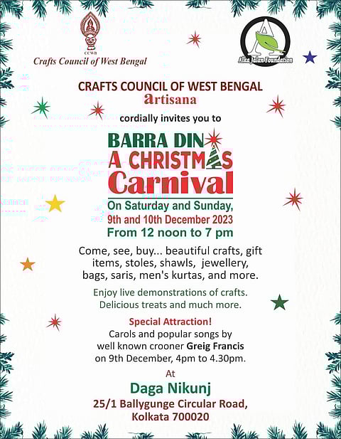 The Crafts Council of West Bengal is hosting a pre-Christmas fair, Barra Din, showcasing some of the best handicrafts, textiles, home decor, etc, from across India. The Sutra stall will display handcrafted contemporary Mekhla sets and Sarees along with jewelleries and accessories Like potli bags. The CoverZ stall will have Silk/ Tussar sarees, embroidered kurtas, kaftans, cushion covers, bed, and table linen. You can also enjoy live demos by craftspersons. There will be food stalls serving delicious Christmas goodies. And some carol singing as well. If you are in town, hit up the fair to pick up some great gifts and stocking fillers.