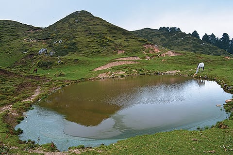 Cross the first meadow, and to the left, the carpet of green stretches endlessly. It is a scene out of an Enid Blyton book green meadows dotted with tiny flowers, a crystal-clear pond full with shimmering water, and herds of cows, sheep, and even a group of feral horses.