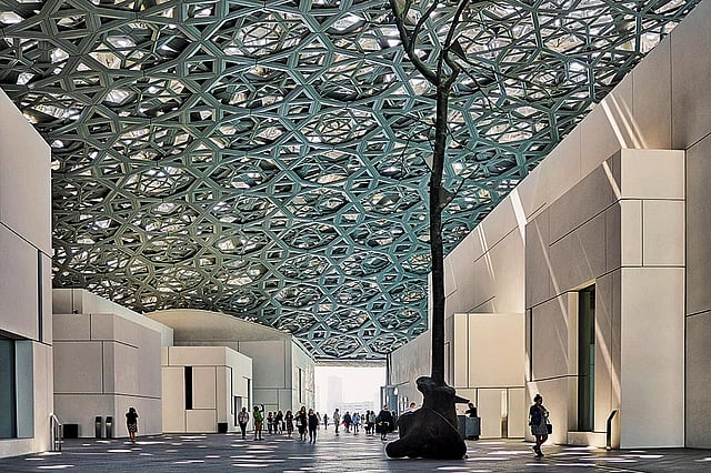 The Louvre Abu Dhabi had 1.4 million visitors in 2024 and over 6 million since it launched in 2017. When we visited, the place was teeming with people. While most were to be found at the galleries, a sizeable number, mostly influencers, were there to take some dramatic shots against the iconic architecture. Designed by French architect Jean Nouvel, the museum’s geometric dome, with its latticed canopy of metal stars, is its most striking feature.