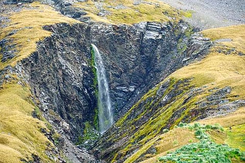 A distant waterfall fed a creek that we crossed to another penguin colony. (The western side of Fortuna Bay is marked by the crags of Breakout Ridge. It was from here, on May 20, 1916, that Ernest Shackleton, Tom Crean and Frank Worsley heard the steam whistle of Stromness whaling station and knew that their dramatic rescue journey to save the stranded crew of the Endurance at Elephant Island was almost at an end. "Never had any one of us heard sweeter music," Shackleton wrote of its sound).