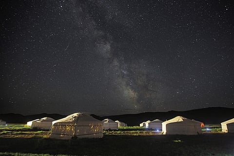The Milky Way seen over a ger camp in Mongolia[/caption]