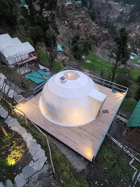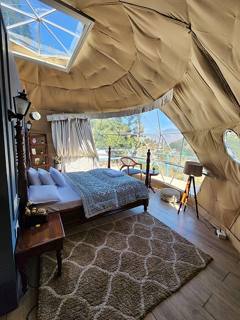 Jibhi, a picturesque little town in Himachal Pradesh, is dotted with hidden waterfalls, streams, and pine trees. Nestled in the midst of the quaint Banjar Valley surrounded by pine forests and freshwater lakes is a new glamping spot perfect for a back-to-nature holiday. Sleep under the stars and wake up to mesmerising views from the panoramic roof while being huddled up in your blanket in the cool weather of Himachal.